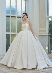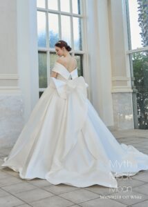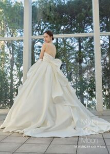 シンプルながら、ライクボーンで裾や後ろフリルトレーンに動きを出して華やかに演出。